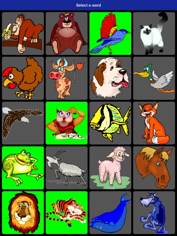 HAVE FUN and hunt the word. If you miss, the letter disappears, so finding the right one gets easier. The animal will jump with joy, each time you hit the right one. And it will shake its head, when you miss.