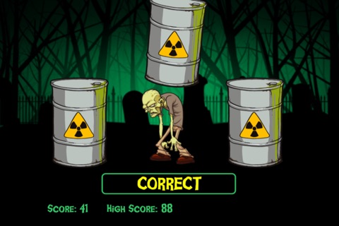 The zombie is hiding under one of the three radioactive drums. Keep an eye on the drums as they are shuffled around and choose the right one to score points.