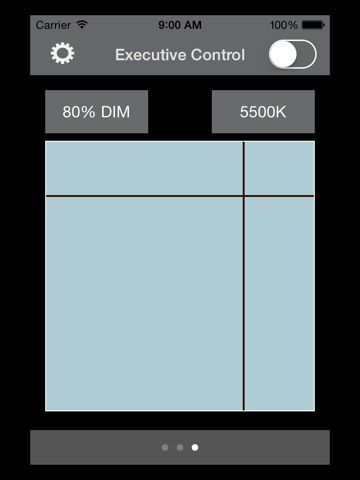 Executive Control – an elegant touch and drag interface. Touch the crosshairs and drag them across, up and down to change color and intensity simultaneously.