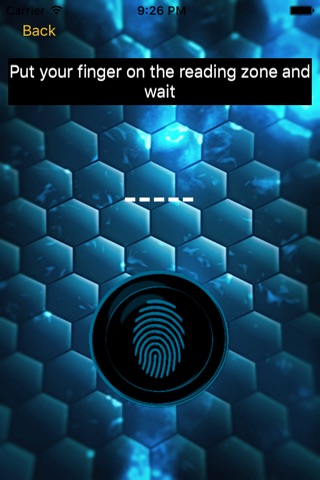 - Step One: place your finger lightly throughout the scanner zone and wait for the result.