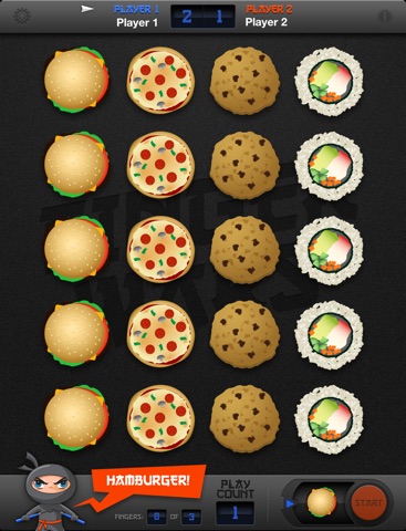 This high-speed single or multi-player game will test the dexterity of your digits. Obey the ninja and put your fingers on the right foods — careful — if you let go accidentally you lose! Try to get the other player to slip instead!