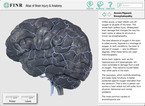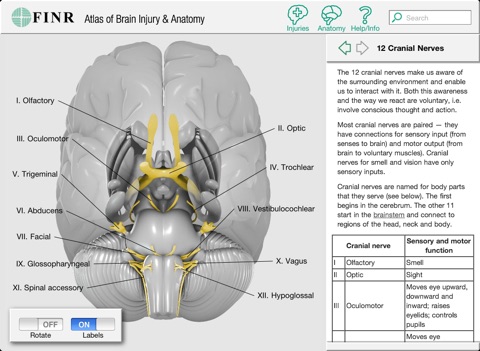 I bought this app primarily as a tool to review my neuroanatomy. But found that its information is too sparse and it takes up a **huge** chunk of my iPads memory for what it has to offer. There are other, better brain anatomy apps out there.