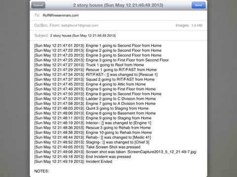 The app is user friendly, and fully customizable. Fire Accountability can be set up for your department’s operations in minutes. In the Set Up screen, you will have the option to pre-program up to 50 companies. This simple feature allows the app to be adapted for use in systems ranging from large metro departments to the smallest rural departments. Whether your department uses engine companies, team numbers, or a combination of the two, Fire Accountability will work for you. While still in the Set Up screen, select a Benchmark Time, your default email address for time stamped logs and you’re ready to Command your first incident.