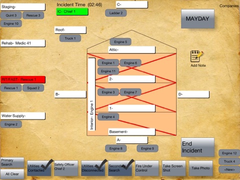 Fire Accountability also assists Fire Officers in managing MAYDAYs. The MAYDAY function is one of dozens of great features imbedded in the app. Fire Accountability will also remind you to perform key functions, as the incident progresses. As you complete tasks like conducting a primary search, hooking up to an FDC, assigning a Safety Officer or contacting utilities, the application tracks your progress. Forget one of these critical tasks and Fire Accountability will alert to remind you. The accountability screens also contain a running timer, to help you track your time on scene. At your pre-selected benchmark times, the app will alarm reminding you to conduct a par, re-assess or confirm your strategy. All these features packed into one simple screen!