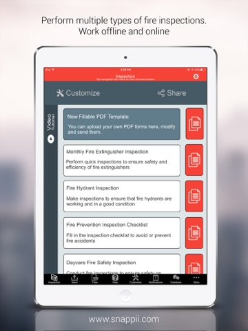 The Fire Inspection app covers such important fire safety components as extinguishers, fire hydrants, fire prevention, day care fire inspection and more. Utilizing mobile forms included in the app fire inspectors can collect, email and share valuable inspection data, store it locally on device, access and edit it.