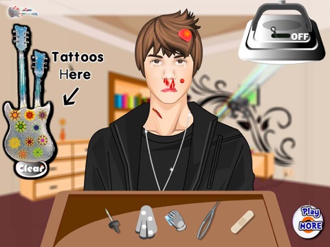 Handsome Guy suffered an accident in one of his concerts and he is making a visit to the doctor.He needs your help to recover from his injuries.You will do a great job and make him healthy again to hold a new concert. This game is a very fun game!