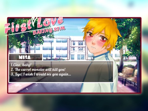 Love is everything you need. Love is a narcotic that makes people act like fools: to jump from the highest buildings, to race on the highest speed, to play with death. Love is the resource of your harmone of happiness. Wake up your sweet feelings in our game First Love Dating Sim.