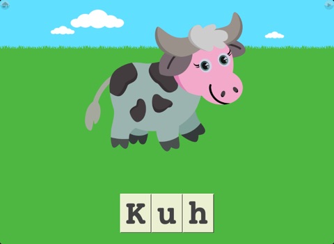 Kids can play this game by themselves, but they also enjoy bringing their adults along, talking about the animals and letters, seeing them spin and make their animal noises, and learning how to say the words in German.