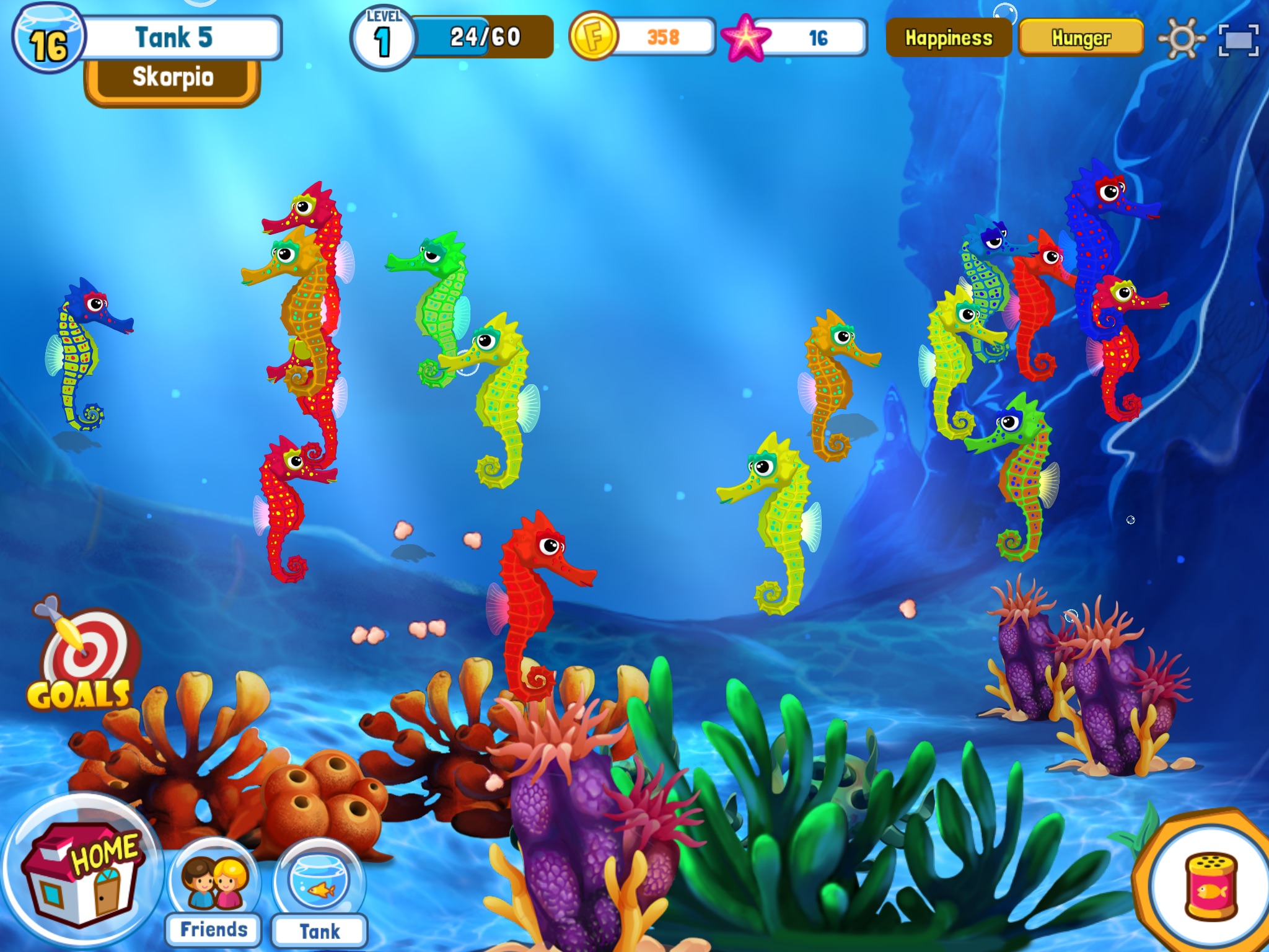 Use special ELIXIRS to add any new color on the fish you want to breed thus creating MULTICOLORED and BRIGHT Fish Tanks.