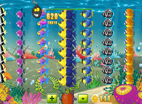 Adventures Under the Sea by submarine. Shooting Fish accumulate coins to develop a more powerful weapon.
