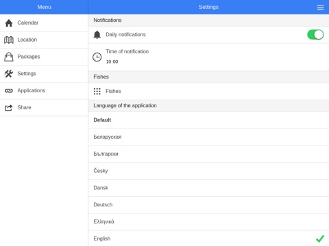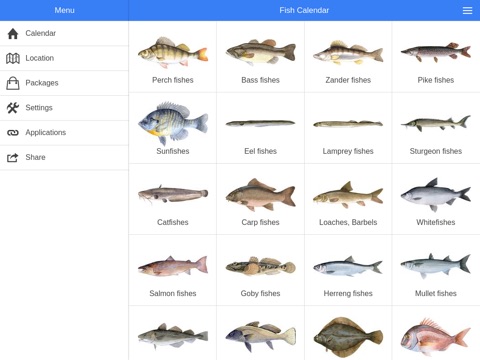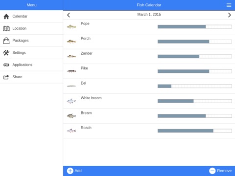 For convenience of display, you can choose to only desired fish species, disabling forecast for that types of fish that you are not going to catch soon. Fishes are distributed by families in App settings.