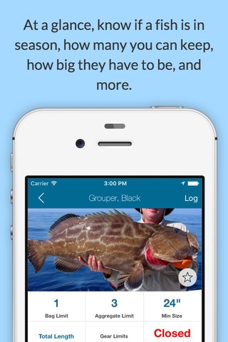 Fish Rules simplifies saltwater fishing regulations into an easy to understand format. With a glance, know if a fish is in season, how many you can keep, how big they have to be, and more.
