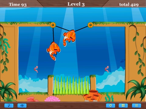 Help the clown fish collect the worms in each level by strategically connecting the fishes to the objects on the screen and letting physics guide them to the worms.