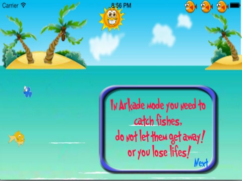 In game you will have a lot of fishes jumping out of water, which you need to collect them. Also try to bet score against your friends :)