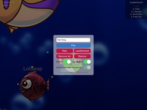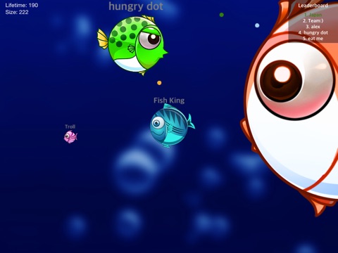 You are a very aggressive fish, wandering around the ocean and eating smaller fishes to grow. Likewise, larger fishes out there seeking to eat you. Survive at long as you can, grow as big as you can and comparing your high score to other players around the world!