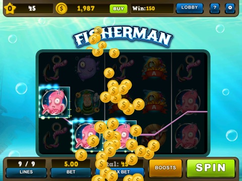 Bet, Spin, and Win Big Jackpot with Vegas style casino slot games. Lots of credits, coins, and fun in the cool Fisherman theme!