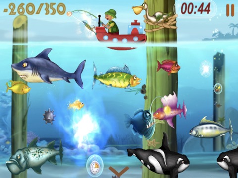 Fishing is not boring work, the game you have to work very hard to control fishing hooks small fish and avoid the big fish.