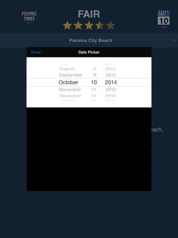 Okay, so, it does tell you when the best times (and worst times) to fish are, it updates daily and it surprisingly has data for my area. However, I went fishing on a "poor" day during the worst times listed and caught more than I did on a "fair" day during the best times listed. I guess this is a good app for those of you who check the weather for the best fishing times, but its not my thing personally. Reminds me of Horoscopes, ha. Still, its put together well, and the daily updates are to be appreciated.