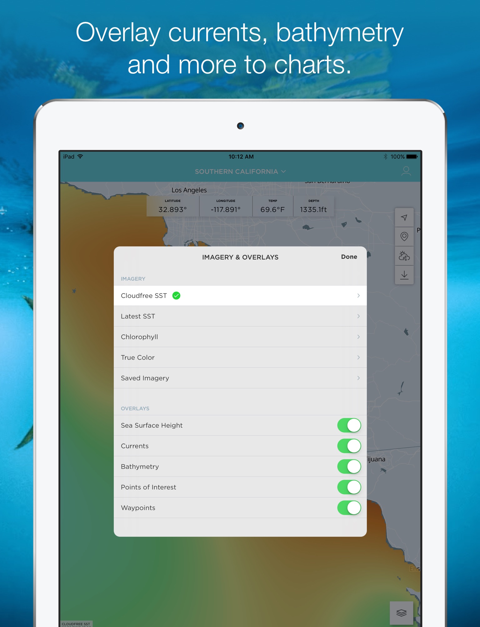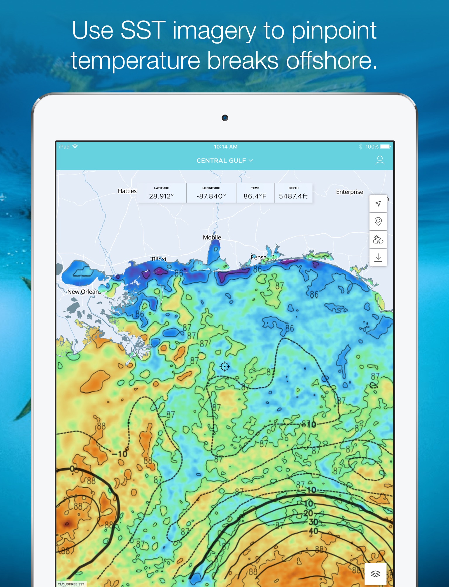 Ive been waiting for an app that lets you take imagery offline. This is just great!! I use the latest SST Charts to find all the temp breaks in my local zone. So far its been very accurate. Cant wait to see what some of these other tools do! Great job guys!