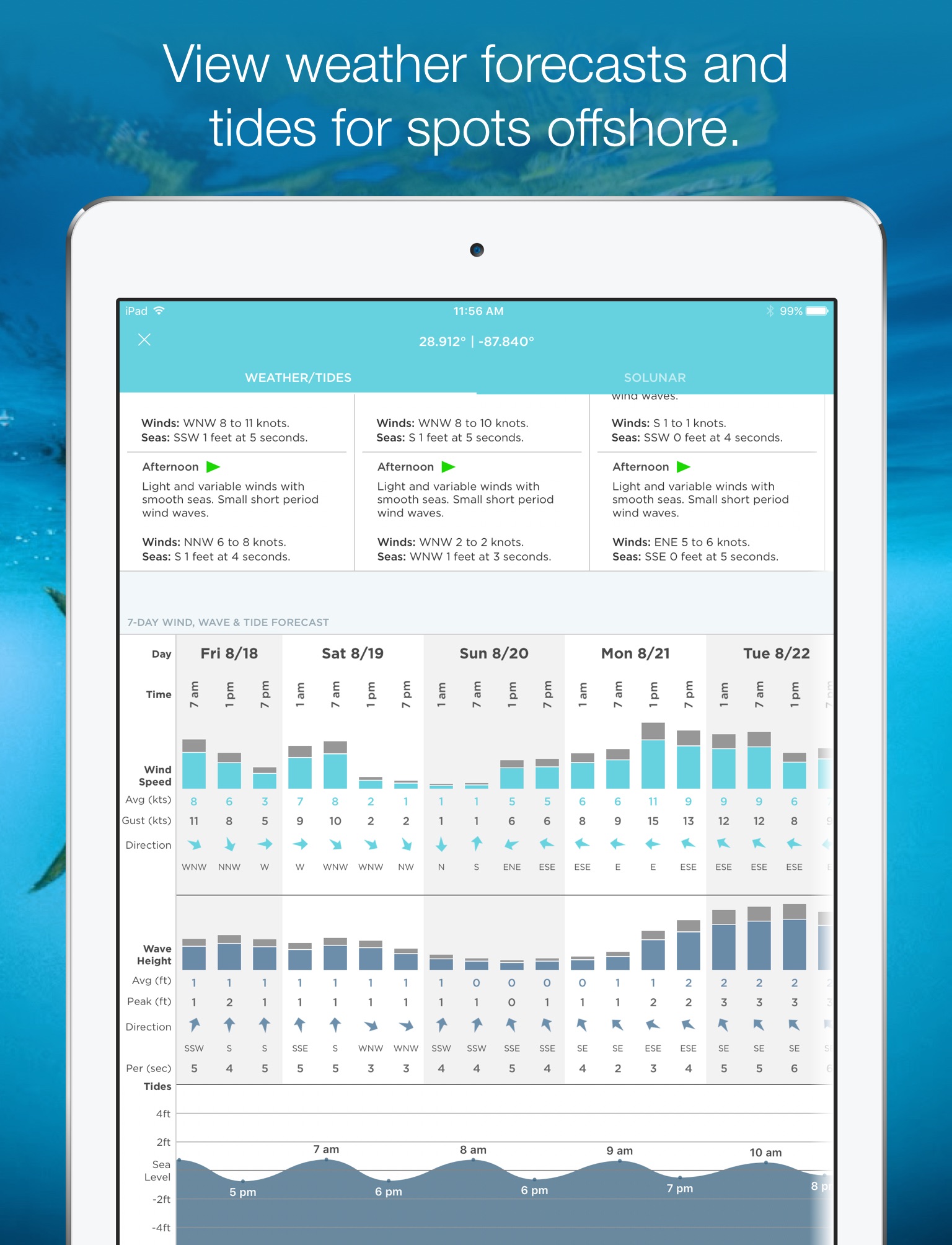 I have found that the information available in this app is very accurate. I use it regularly planning my offshore fishing itineraries. It is a big time saver.