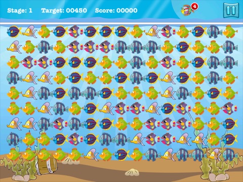 The object of the game is to clear the board by grouping fish species together.