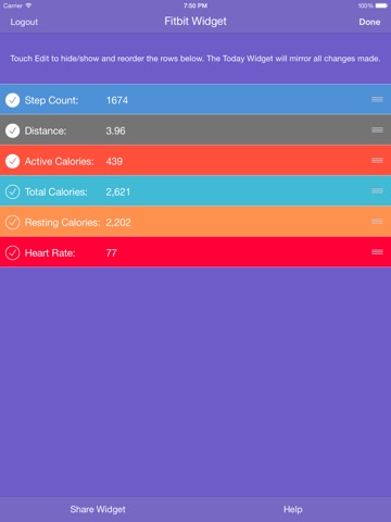 I like using this app to display my Fitbit data in the Notification Center. This would allow me to quickly check my exercise status by just swiping down on the screen. Very convenient.