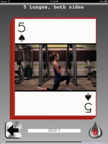 FitCards provides a 52-card deck that displays various bodyweight exercises for you to follow. Four exercises are associated with a specific muscle group and are assigned to each suit. For example, diamonds represent upper body, spades represent lower body, clubs represent abs and hearts represent cardio/isometric exercises.