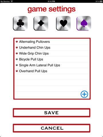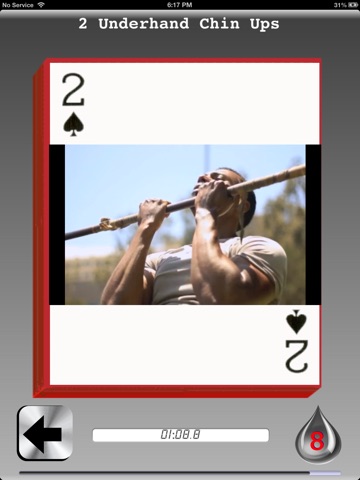 You will gain points for every exercise you complete. A timer will also be provided so you can keep track of your time during game play. You can stop the game whenever you feel like you have done enough. Just press the back arrow button and choose to see your time and score. The goal is to eventually finish the whole 52 card deck in 45 minutes or less, so log your results in order to track progress.