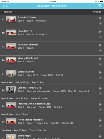 • Record yourself while exercising to see side by side comparison with coaching videos