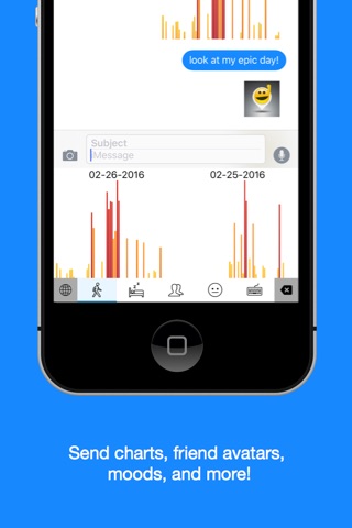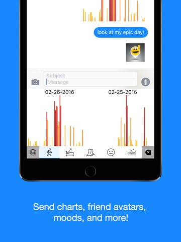 FitMoji for Jawbone UP lets you easily share charts, avatars and more from within the app or the custom keyboard! Step charts and sleep charts let you show how youve done on a specific day! Mood emojis let you show how youre feeling with Jawbones Emojis! Have fun and get sharing today!