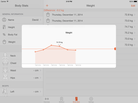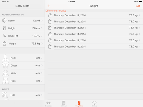 - Body tracker to control your weight and other body measurements.