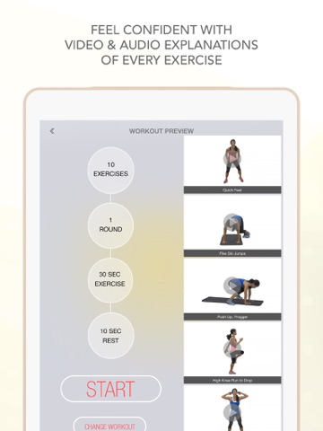 This app has been a great workout buddy. The work outs are short but intense and I feel the effects the next day ;-) I highly recommend it.