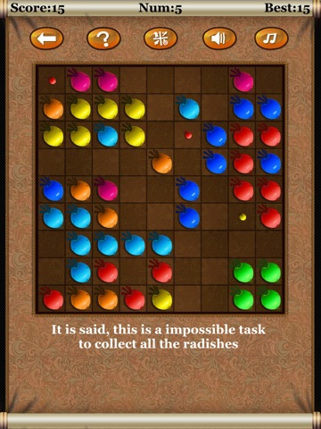 Your task in this game is to move and connect the radishes, so that 5 or more radishes of the same color form a straight line in vertical, horizontal or diagonal direction and then be destroyed.