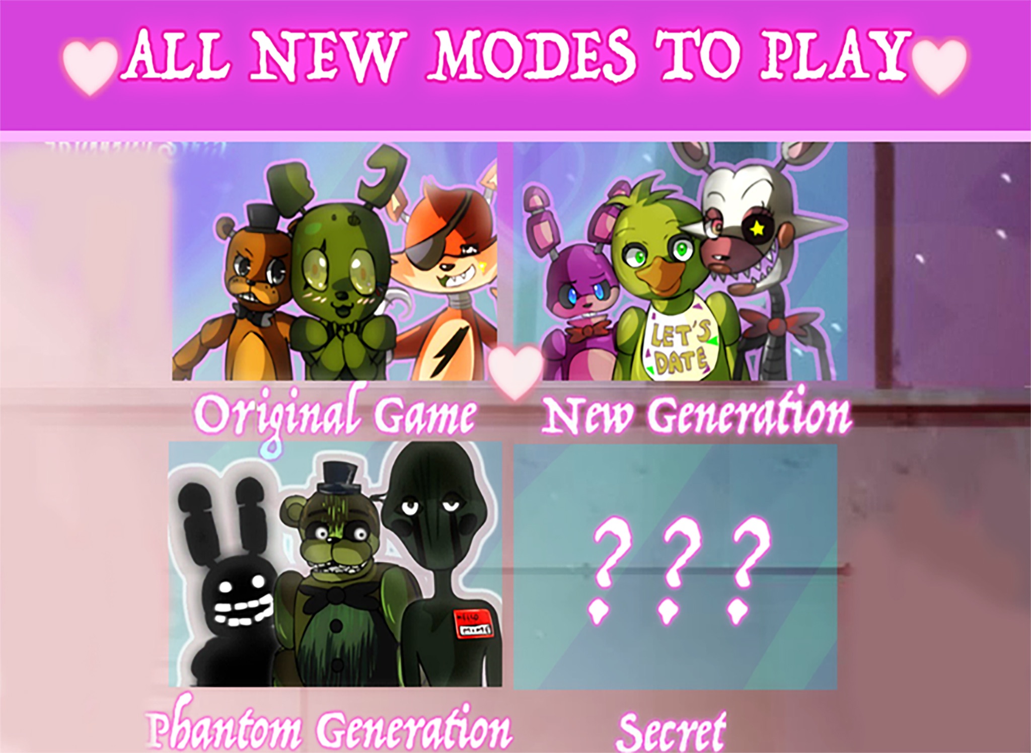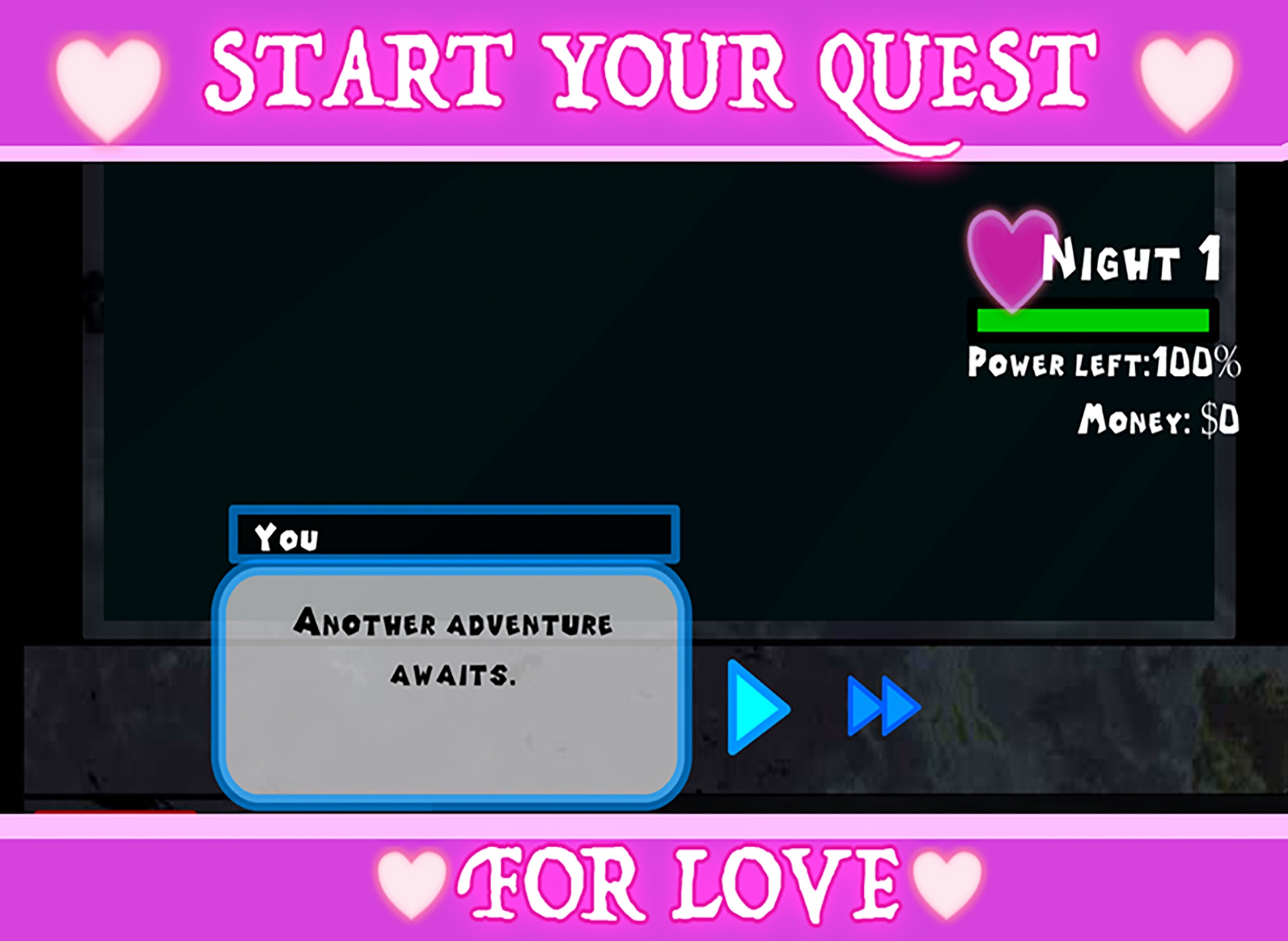 You have nothing to do for five nights. Do you choose to interact with the residents in the rooms, or do you just want to sweep the halls for money? Its up to you! Find your favorite animatronics! Talk to them or give them gifts to build up their love for you. You have five tries and five nights, to find the love of your life.