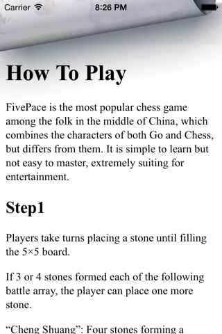 FivePace is the most popular chess game among the folk in the middle of China, which combines the characters of both Go and Chess, but differs from them. It is simple to learn but not easy to master, extremely suiting for entertainment.