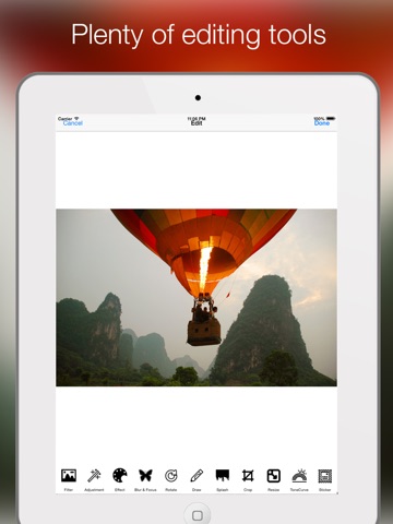 Photo Editor includes every tool you need in order to enhance and adjust images, and create stunning professional looking pics and memes.