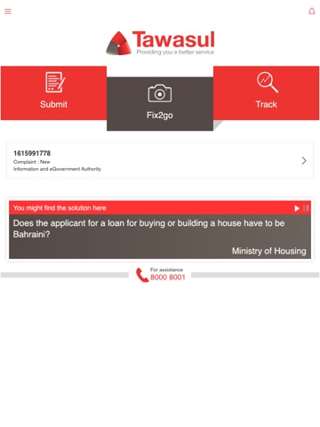 Tawasul App is the mobile version of the National Suggestions & Complaints System which is one of the essential eChannels that enable citizens and residents to submit their suggestions and complaints to any government entity in Kingdom of Bahrain easily at any time and from anywhere by utilizing the mobile features that add more value to the services. Every government entity in Tawasul has assigned a dedicated team to handle the suggestions and complaints according to a pre-set performance indicator and timeframe based on the case category.