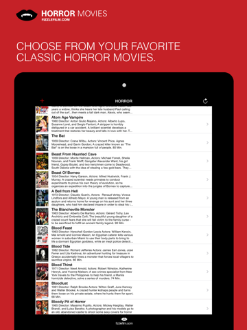 You will find that Fizzlefilm Horror is the most extensive archive of classic scary movies in the App Store.