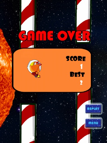 Help Flabby Bird to escape from the scorching sun and all the celestial obstacles in space. (Yes. The pipes...I mean candy canes, have stood the test of time and they are now celestial....)