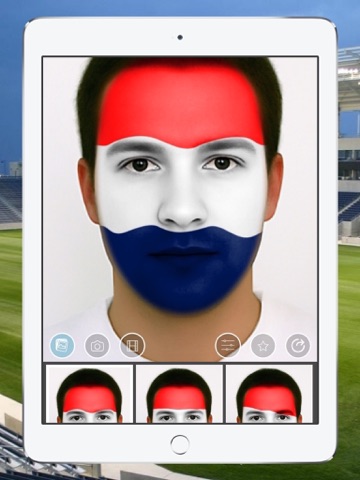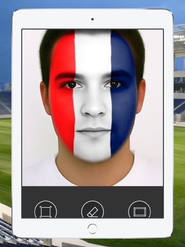 * Looking straight ahead at the camera, the app will detect and paint flag automatically