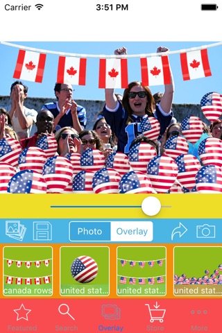 This app allows adding a countrys flag as a filter to your pictures. It is a great way of showing support to a certain country during a disastrous events or sports related activities.