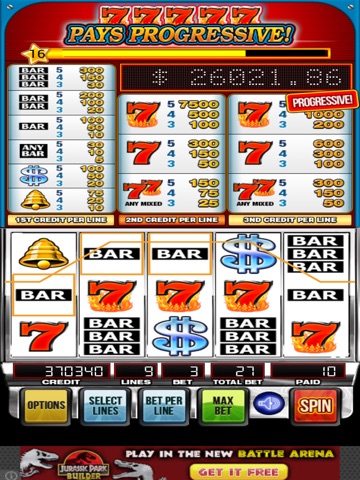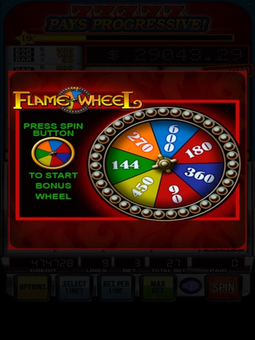 Flaming Sevens Slot machine contains beautiful graphics, exciting gameplay, amazing sounds and eye popping animations. Spin the Flaming Wheel or rack up extra points during our Double Credits time! Come claim your free bonuses now, climb the leader board, and hit the PROGRESSIVE JACKPOT! Enjoy the Las Vegas casino atmosphere as you play. So what are you waiting for download now for free.