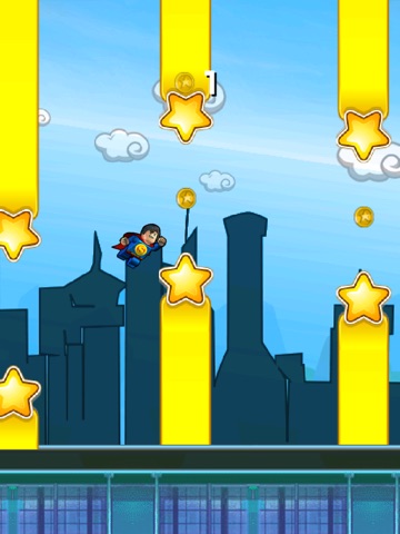 Tap your finger to keep the hero in the air. Pass between the posts and collect the coins to earn points.