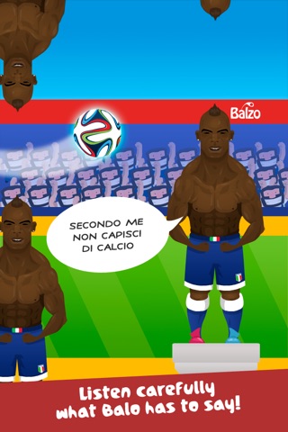 It is a simple one-button game in which you have to hit the ball past the obstacles (impersonated by a clone of the world famous football player Balotelli) to reach the stadium.
