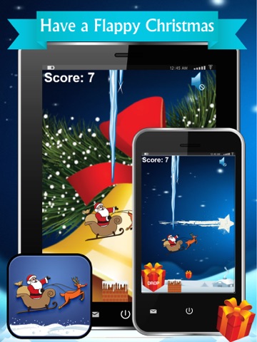 Grab your holiday cheer and get started flapping now! To play all you have to do is tap on the screen to keep Santa, his sleigh, and the presents coming! That’s right! Tap on the presents and Santa will toss them! Get them in the chimneys for 2 extra points!