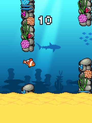Collect points for each obstacle you clear. Tap on the screen and avoid the coral columns!