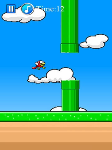 Tap the bird on-screen to help the bird fly through the gaps in the pipes.