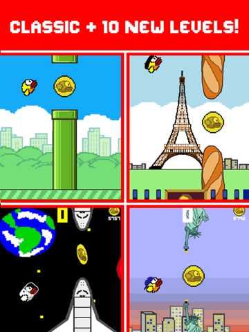 Now you can experience Flappy all over the world and set records on each of the 12 levels! Fly between the pipes and obstacles and collect coins to unlock cool hats!