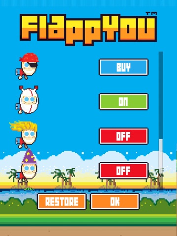 Purchase Super-fun upgrades allowing you to customize your flapping character including: