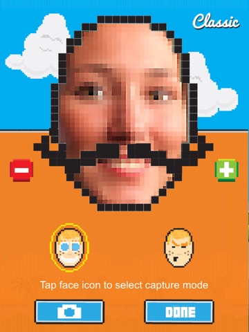 Use the live video feed to capture your player pic and FlappYou! Game arts, graphics, and music have a super-retro 8-bit feel; use the pixelation effect to make your player face pic appear 8-bit too!